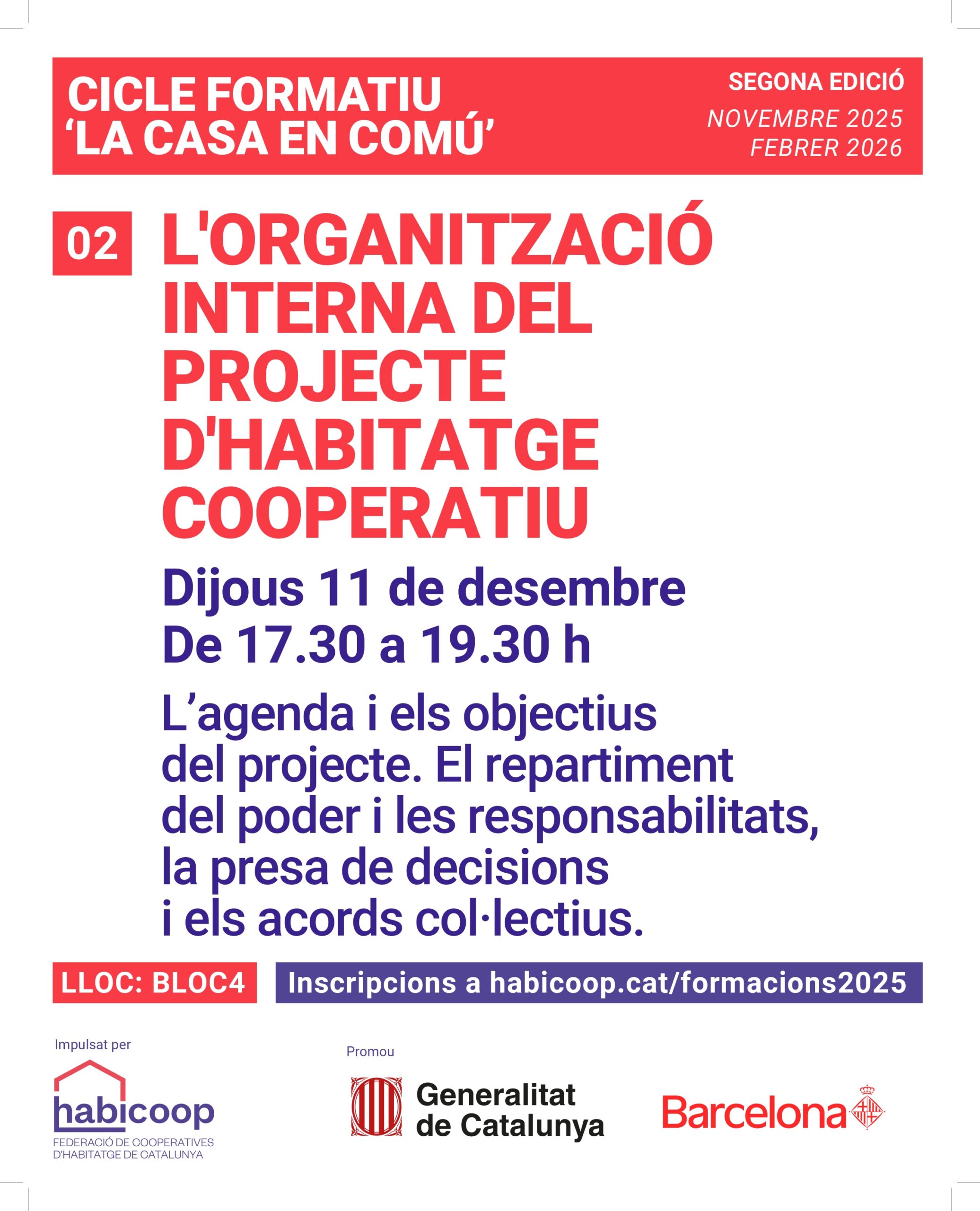Des de Coòpolis impulsem el nou Punt d’Atenció a l’Habitatge Cooperatiu, dins el servei d’Intercooperació del Bloc4BCN. El punt d’atenció específic està ubicat a l’espai A15 del Bloc4BCN, i té per objectiu donar suport a grups i persones interessades a desenvolupar un projectes d’habitatge cooperatiu en cessió d’ús: aclariment de dubtes genèrics sobre el model, accés a serveis i agents a l’abast, informació de projectes en convivència i promoció, etc.